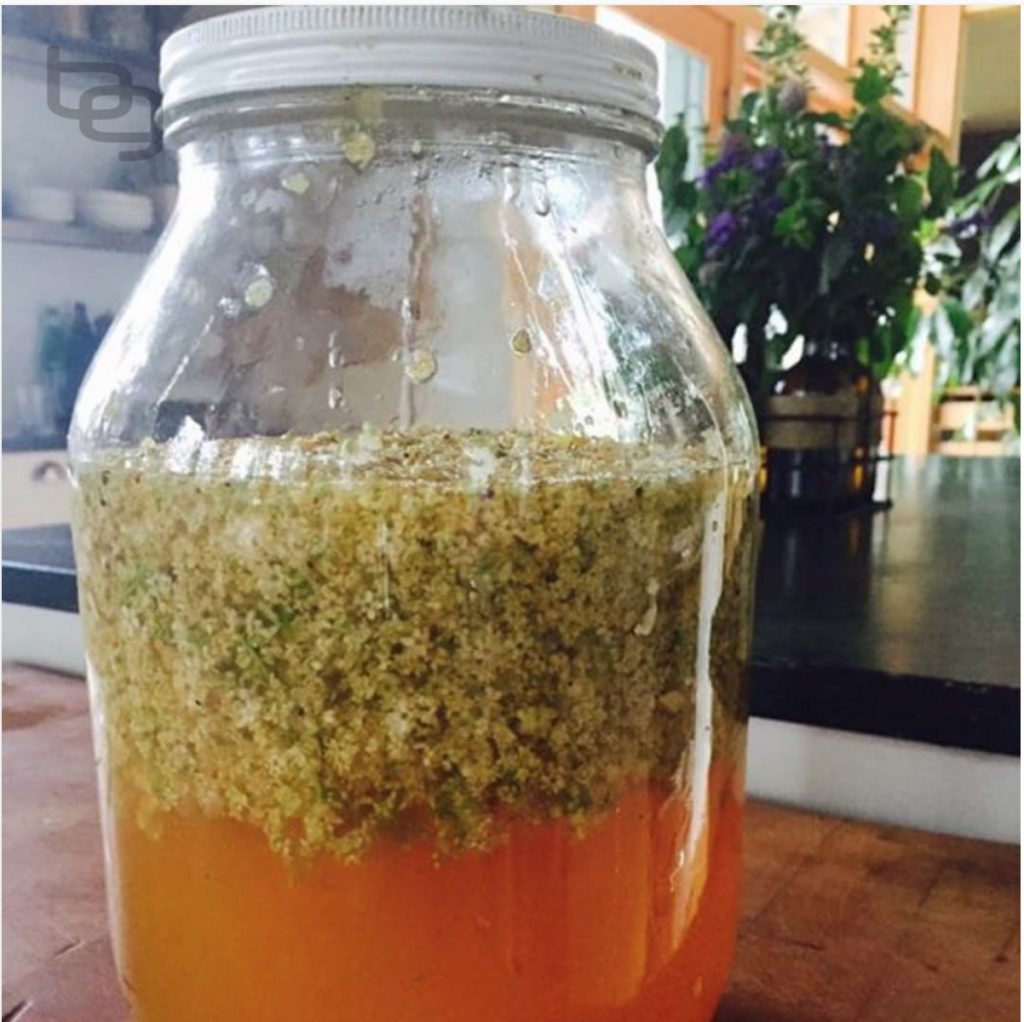 The mixture is then allowed to soak overnight. The next day, the contents from the jar are put into a blender with: