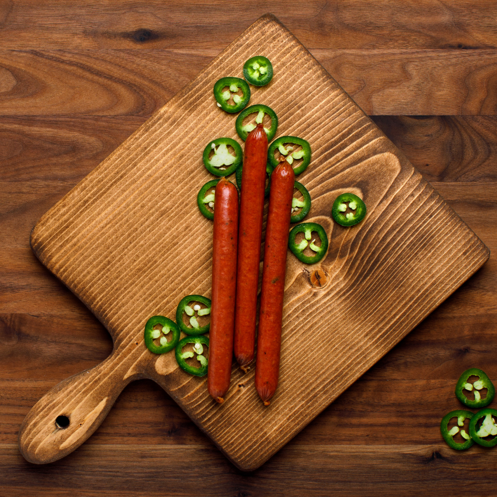 Original, Jalapeno, Summer Sausage, Garlic Summer Sausage, and Teriyaki.