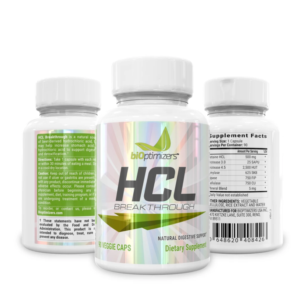 If you have low stomach acid, you may tend to have some nutrient deficiencies and digestion symptoms. You may feel a heavy sensation in their stomach and bloating, especially after meat-heavy meals. BiOptimizers HCL Breakthrough will help you improve your digestive symptoms.