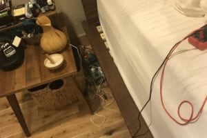 To mitigate EVERYTHING in the bedroom you’d have healthy levels of RF, near ZERO electric fields (I like below 15 millivolts, below 30 v/m on EM Field Probe), and no geopathic stress. To achieve zero geopathic stress you can’t have any metal above the mats that are to be placed under the bed, including the bed frame.